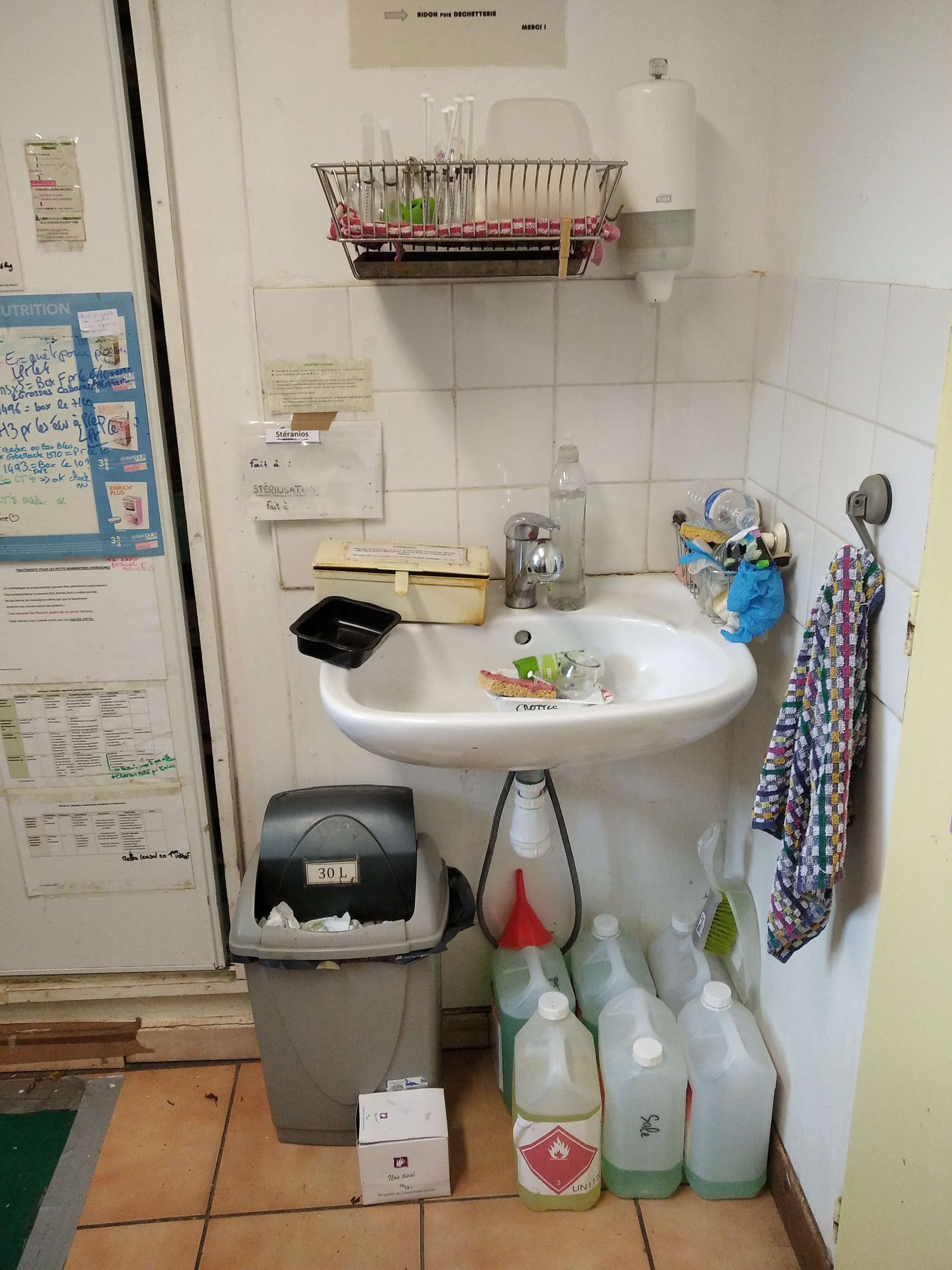 D’autre part pour garantir l’asepsie correcte du matériel désinfecté au glutaraldéhyde, il convient de le rincer à l’eau stérile (filtrée à 0.2µm) puis de le placer dans un emballage lui-même stérile, ce que nous ne faisons pas : nous rinçons à l’eau courante et stockons le matériel à l’air ambiant, rajoutant potentiellement instantanément des centaines voire milliers de bactéries et spores. Cette procédure inadaptée nous fait perdre l’intérêt de la désinfection dite de « haut niveau » pour rejoindre un niveau de désinfection dit « intermédiaire ». Ce niveau intermédiaire est adapté pour la désinfection du matériel médical susceptible d’être en contact avec des tissus non stériles comme la peau, les plaies superficielles, la sphère oro-pharyngée et rectale. Pour donner un exemple, il est parfaitement réglementaire en médecine humaine ou vétérinaire, de désinfecter un thermomètre oral ou rectal avec un désinfectant de niveau intermédiaire comme l’alcool modifié à 70° (qui n’est pas sporicide). Ainsi la désinfection de nos seringues (utilisées uniquement pour des voies orales) et de notre petit matériel (pinces, ciseaux, sondes…) peut, me semble-t-il, parfaitement être réalisé avec de l’alcool à 70° sans compromettre la sécurité des animaux et en accord avec les normes en vigueur. L’alcool à 70° est beaucoup moins dangereux que le glutaraldéhyde et présente de nombreux avantages dont notamment l’absence de nécessité de rinçage : une fois évaporé l’alcool ne laisse aucun résidu chimique sur le matériel faisant gagner un temps précieux aux équipes. En effet, durant la saison d’été, il n’est pas rare de devoir laver, désinfecter et rincer manuellement des dizaines voire centaines de seringues.