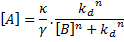 dydt(1) = kappa*(kd.^n/(kd.^n+y(2).^n))- gamma*y(1); % A