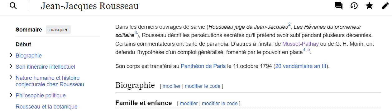 Aux alentours du 28 février, j’ai modifié plusieurs articles Wikipédia relatifs à Jean-Jacques Rousseau :