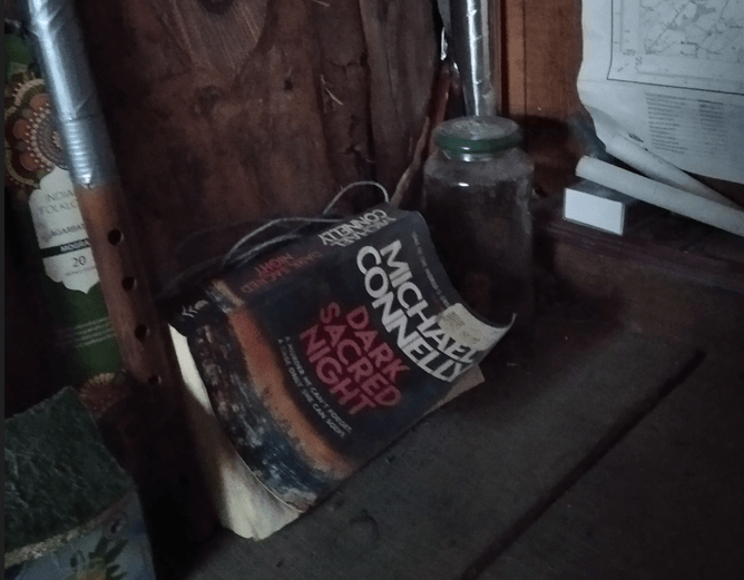 Je suis allé me balader en forêt et j’ai visité une cabane. Dans cette cabane, il y avait un seul livre : un polar de Michael Connely nommé « Dark sacred night ». Les mots « obscurité » (darkness) et « nuit » (night) sont des mots qui font explicitement référence aux mondes secrets et horribles que je décris. Il y a quelques années (~2016-2019), j’avais passé pas mal de temps dans les cabanes de montagne dans les Alpes pour réfléchir à ce qui m’arrivait. Régulièrement, un polar au titre équivoque et angoissant m’attendait dans la cabane. Il s’agissait à cette époque de menaces de mort à peine voilées. C’est encore une technique de base. Mais le 25 février, il s’agissait d’une cabane très austère, peu connue, entretenue par les chasseurs locaux. La présence d’un tel livre en version anglaise n’est pas le fruit du hasard. Il a été laissé intentionnellement à mon intention il y a quelques années de cela car la probabilité que je squatte cette cabane était jugée très élevée. Et dans les faits, cela s’est avéré exact : j’ai visité cette cabane et je suis donc tombé sur le bouquin. L’après-midi, je suis retourné dans mon association de malade et des références à la forêt était présente ici ou là : telle adhérente avait oublié son paquet de « Hollywood » (wood=bois) chewing gum à la chlorophylle (bien en évidence sur la table pour être sûr que je ne le rate pas), telle sortie en forêt était prévue le samedi suivant etc…